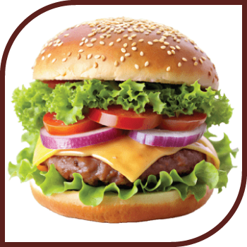 Beef patty with bacon, lettuce, tomato, cheese & mayo on brioche bun.
