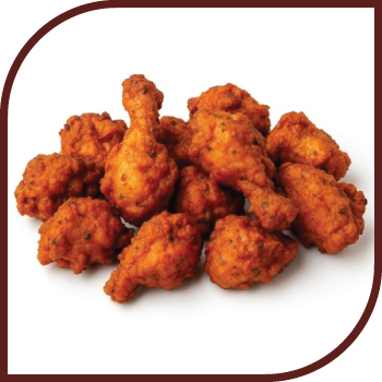 Delicately spiced cubes of chicken dipped in batter and fried.